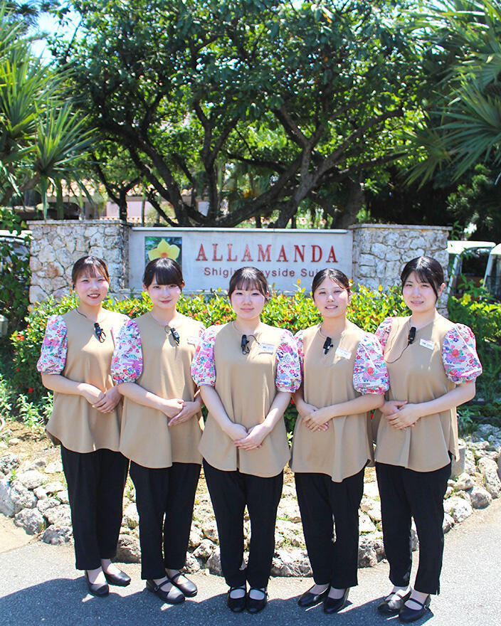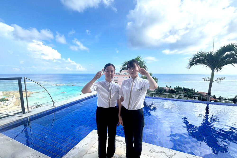 場所は、沖縄県の宮古島を代表するリゾートホテル「シギラセブンマイルズリゾート」内で、「シギラ ベイサイドスイート アラマンダ」に5名、「ホテル シギラミラージュ」に2名が就業体験を行いました。