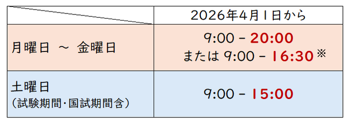 【3/6更新】閉館時間繰り上げのお知らせ(2026年4月より)