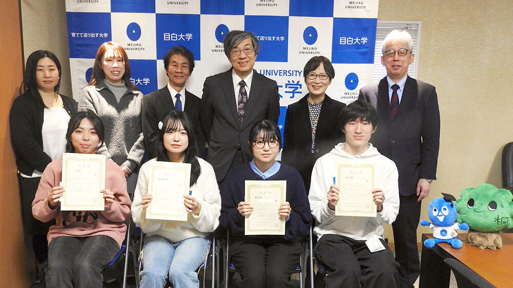 表彰式では太原学長から各受賞者に表彰状が授与されました。今回採用されたデザインは、大学のシャトル便車両にラッピング施工される予定です。この取り組みは、大学のブランディングや地域へのアピールにもつながります。