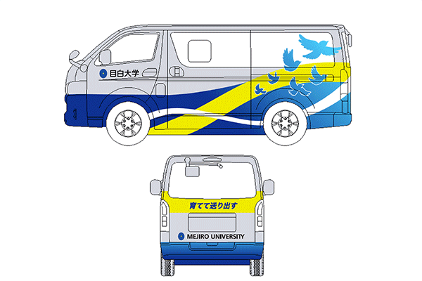 【mediaction】メディア学科の学生が大学シャトル便車両のラッピングをデザインしました!