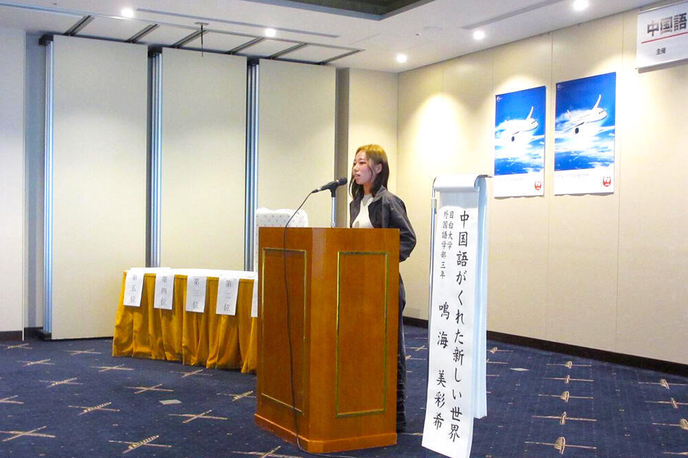 12月6日(土)、日本航空と日華青少年交流協会の共催による「2025年度中国語スピーチコンテスト」が行われ、外国語学部中国語学科3年生の鳴海美彩希さんが見事5位に入賞しました。
