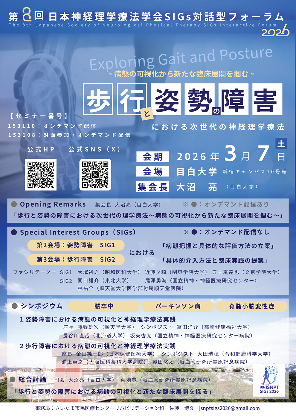 3月7日(土)に「第8回 日本神経理学療法学会SIGs参加型フォーラム2026」が行われます。