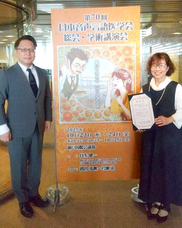 春原教授は、兵庫県神戸市で開催された第70回日本音声言語医学会総会・学術講演会(10月23日・24日)にて、受賞講演を行いました。