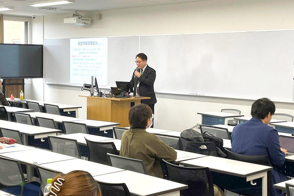 後藤准教授は、「発達性ディスレクシア児の評価と支援」というタイトルで、読み書きに困難を示す発達性ディスレクシア児の評価や仮名(ひらがな・カタカナ)を中心とした読み書きの指導、また在籍学級の中で実施される合理的配慮について講演しました。
