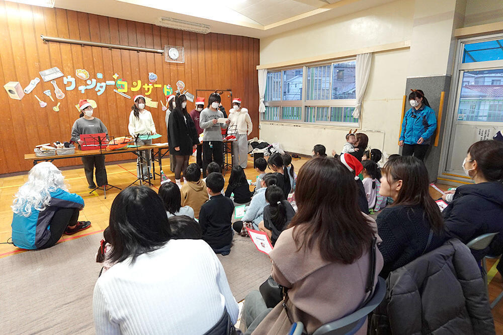 12月24日(水)に、人間学部子ども学科の佐藤雄紀ゼミが、新宿区中井児童館にてクリスマスコラボコンサートを開催しました。