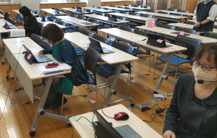 学生課職員や学生就職委員会の教員が16台のパソコンをチェックしながら手作り運営しています。