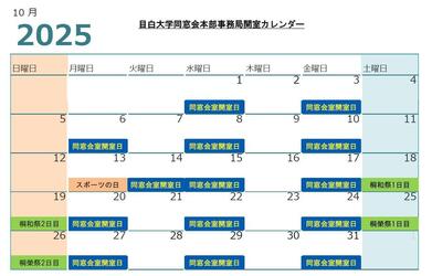【2025年10月 開室カレンダーのお知らせ】