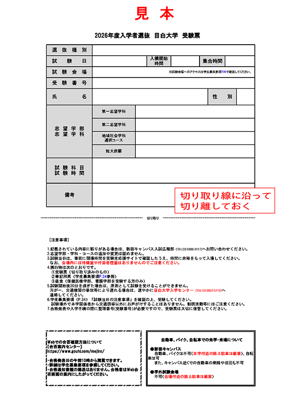 ・合格発表や入学手続の際に受験番号が必要となりますので大切に保管しておいてください。