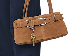 素材感とカラーでコーデを引き立てるコンパクトなバッグがPOINT!