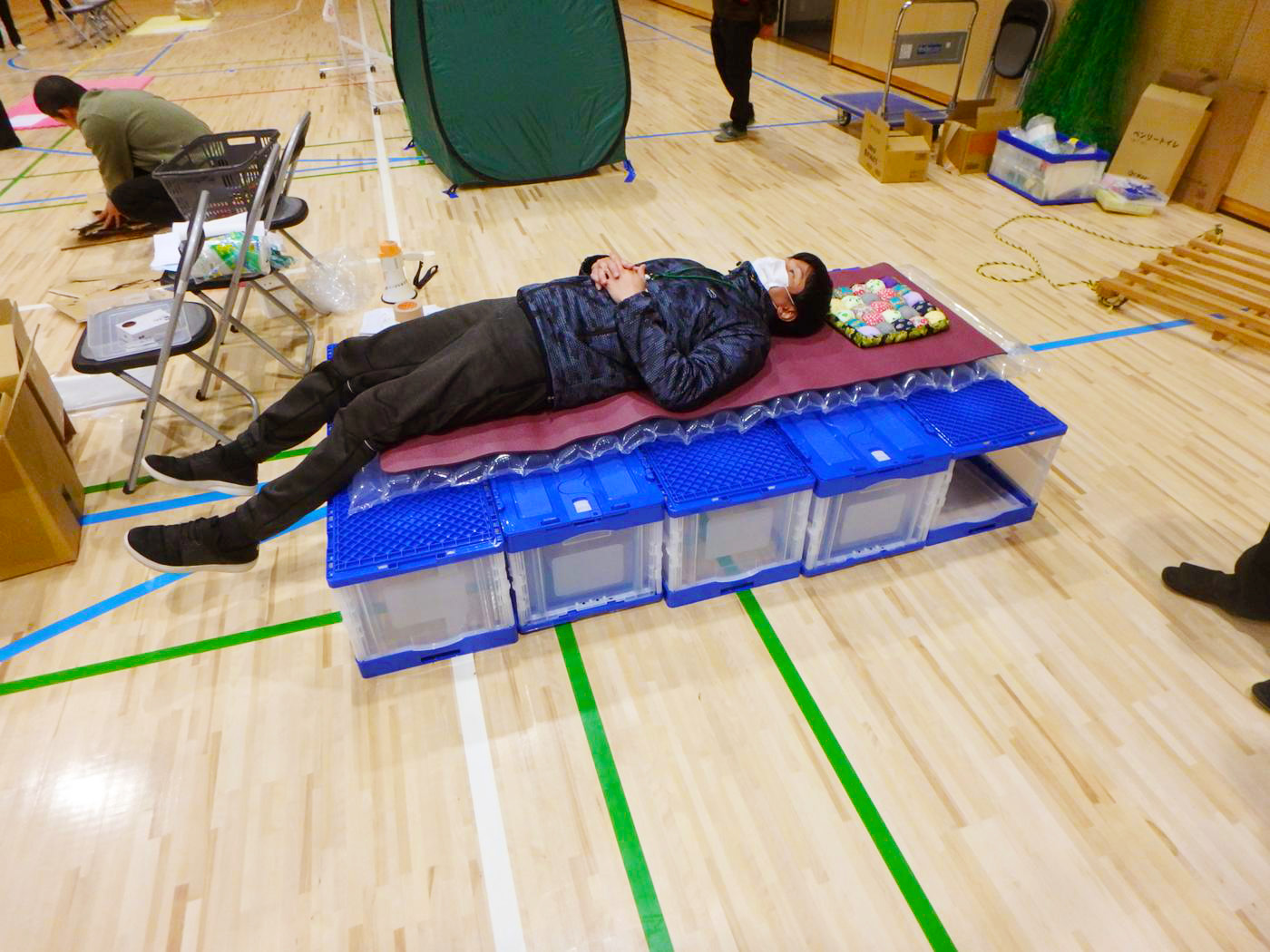 ③簡易マスク作成 ④簡易トイレ作成 ⑤簡易ベッド体験